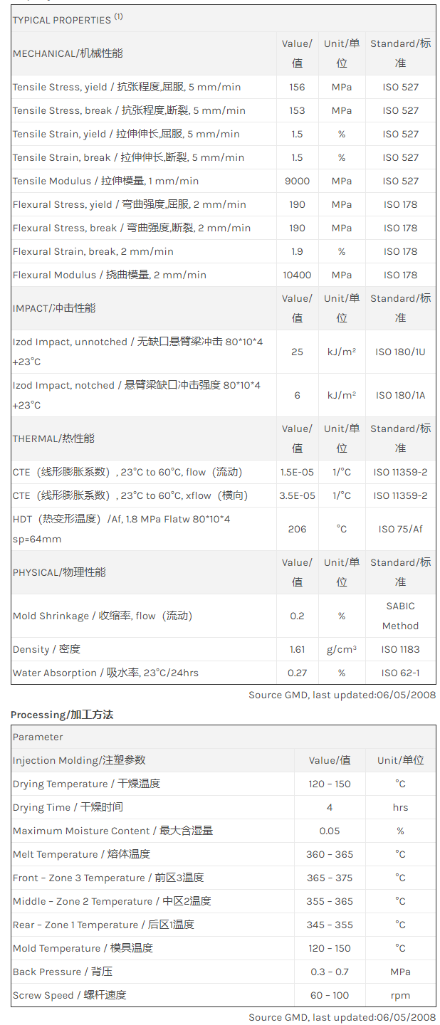 应用范围: 产品描述 LNP Thermocomp EFB26ER物性表 “LNP THERMOCOMP EFB26ER是一种聚醚酰亚胺(PEI)材料,含有的填充物为玻璃珠\玻璃纤维,加工方式为:注射成型。 LNP THERMOCOMP EFB26ER的主要特性有: 通过ROHS认证 加工性能良好” LNP* THERMOCOMP* EFB26ER is a compound based on