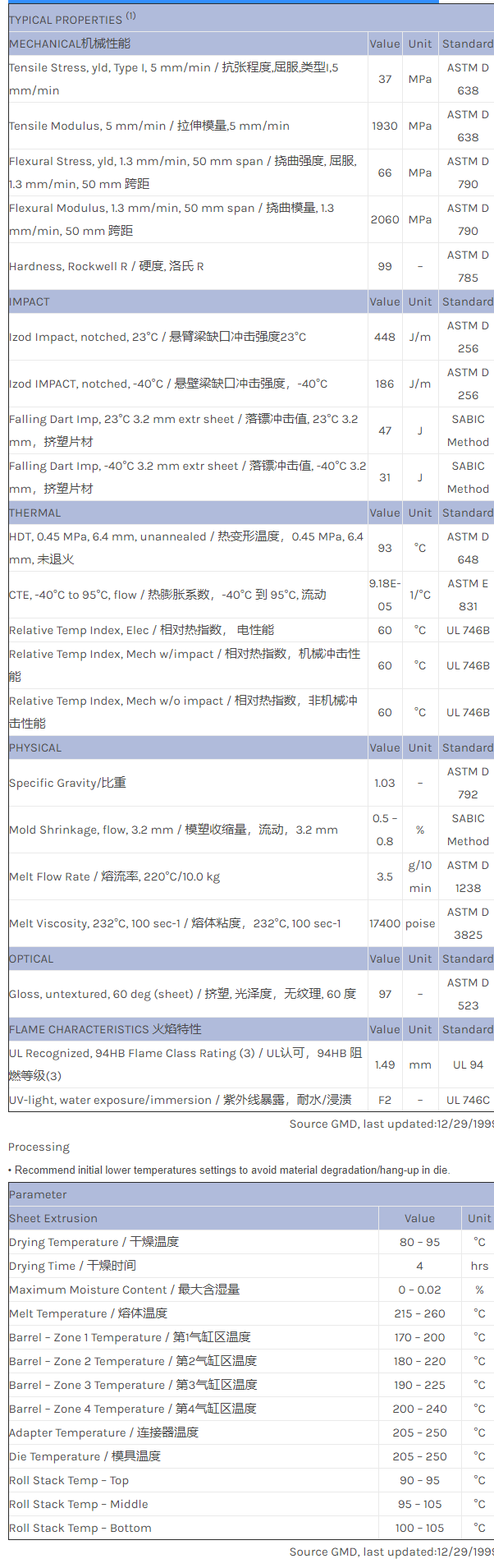 CYCOLAC ABS GPX3800物性表