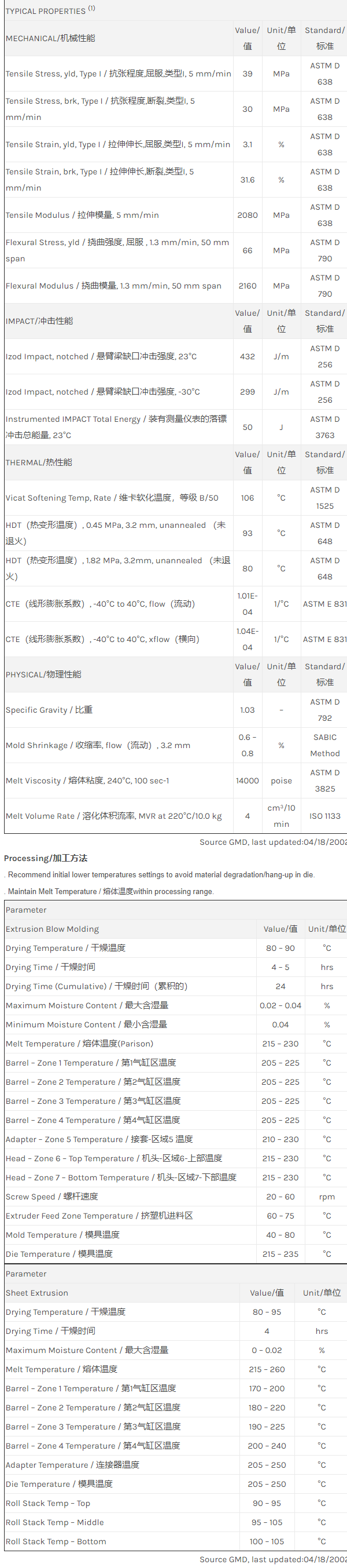 “Cycolac GX3800F 是一种丙烯腈丁二烯苯乙烯(ABS)产品,可以通过挤出吹塑成型或片材挤出成型进行加工。