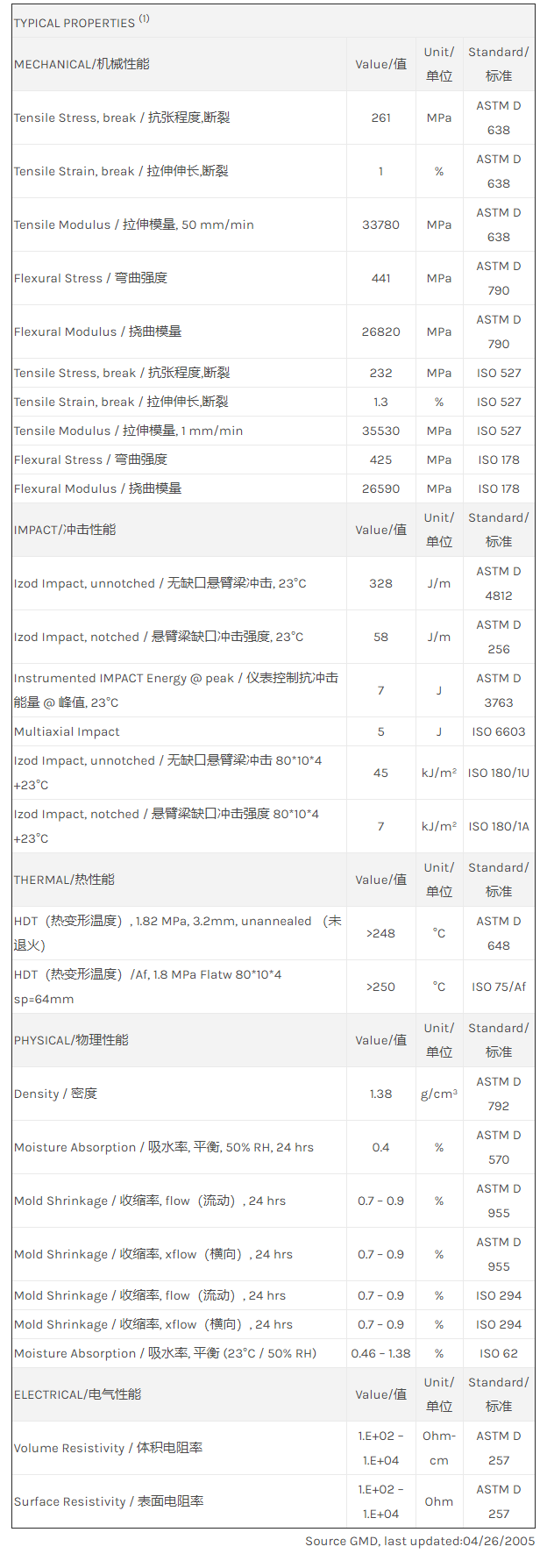 应用范围: 产品描述 LNP Thermocomp UC008H物性表 “LNP THERMOCOMP UC008H是一种聚二甲苯酰胺(PPA)材料,含有的填充物为碳纤维增强材料。 LNP THERMOCOMP UC008H的主要特性为:传导性” LNP THERMOCOMP* UC008H is a compound based on Polyphthalamide resin containi