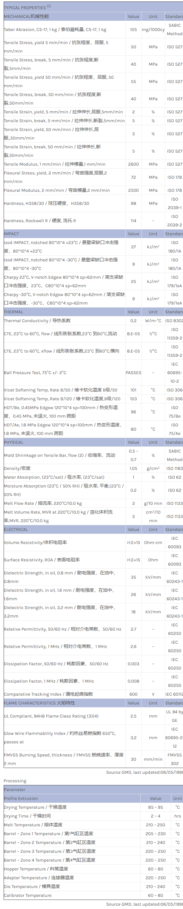 应用范围:产品描述CYCOLAC ABS S848物性表CYCOLAC S848 is a high modulus G-Serie extrusion grade. It demonstrates a superior processing window, excellent melt strength and excellent vacuum forming properties.