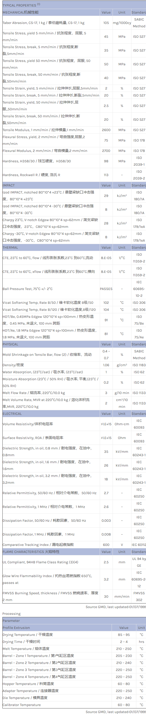 应用范围:产品描述CYCOLAC ABS WP1物性表CYCOLAC WP1 is a high modulus G-Serie extrusion grade. It demonstrates a superior processing window, excellent melt strength and weldability properties.