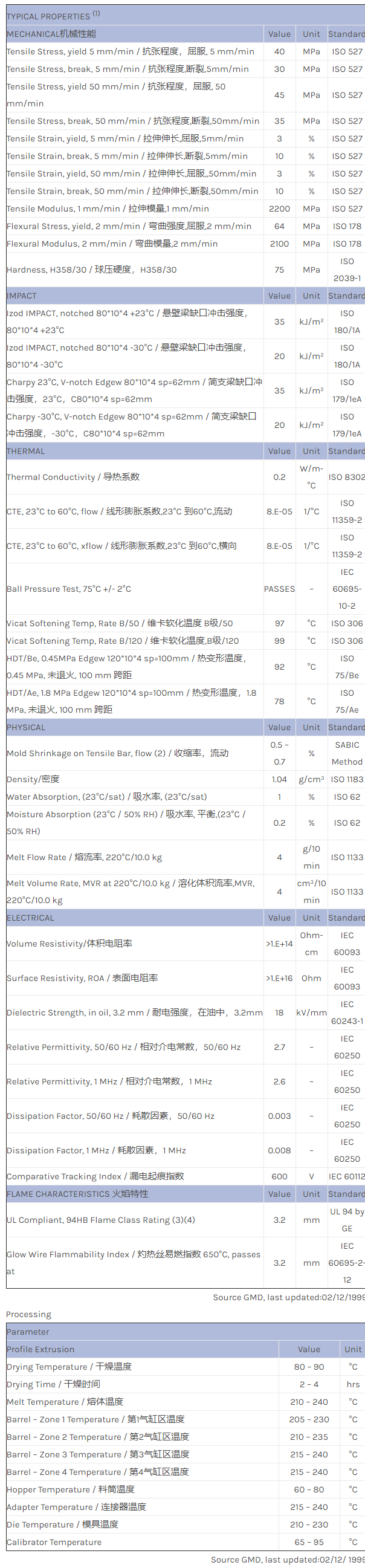 CYCOLAC ABS X399物性表