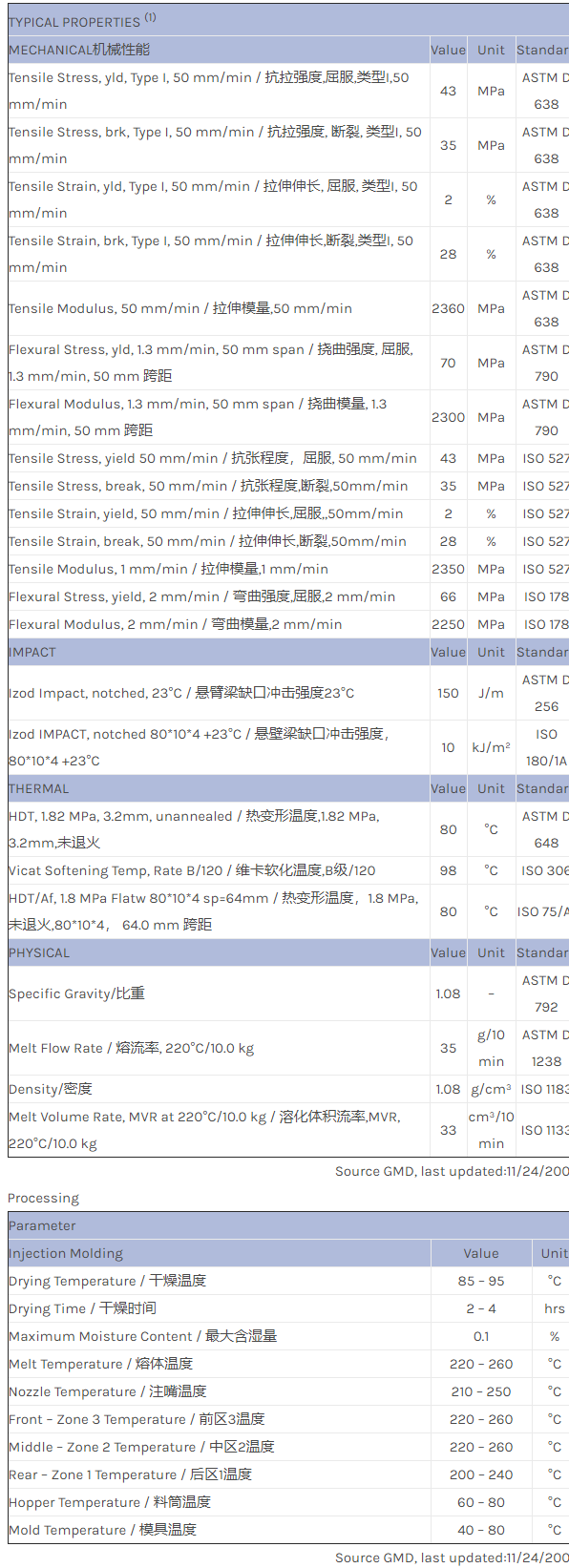 CYCOLAC ABS EXCC0010物性表
