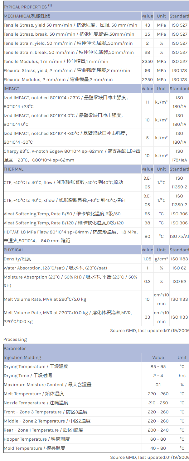 应用范围:产品描述YCOLAC ABS FXS600AR物性表Visual Ares effect Cycolac ABS material with excellent flow properties.