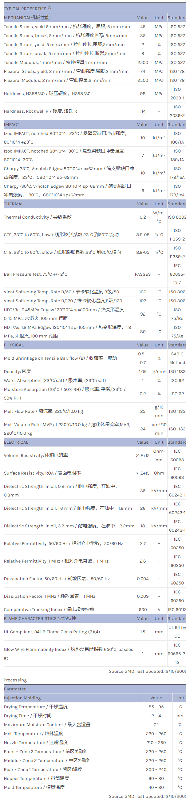 CYCOLAC ABS FXS610FE物性表