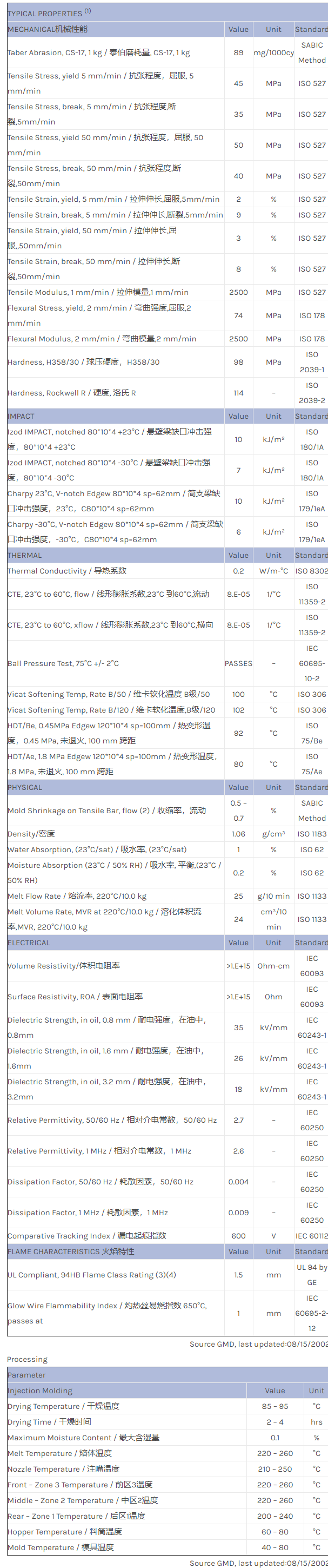 CYCOLAC ABS FXS610ST物性表