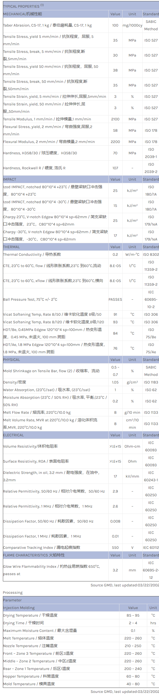 CYCOLAC ABS FXS612AR物性表