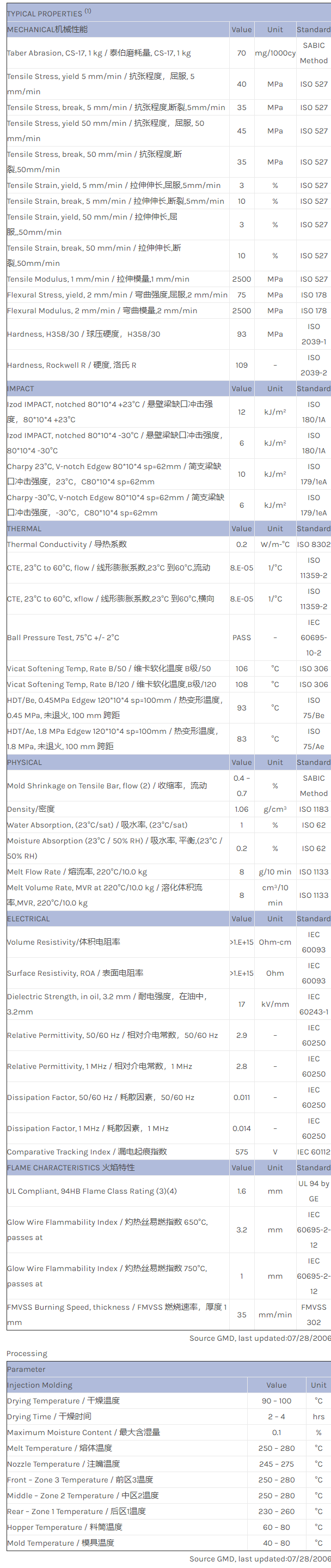 CYCOLAC ABS FXS620MA物性表