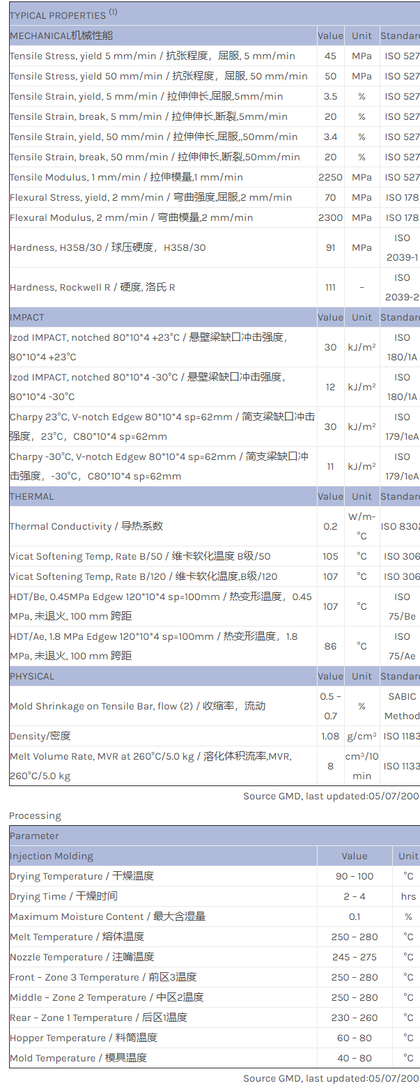 应用范围:产品描述CYCOLAC ABS FXS650SK物性表CYCOLAC FXS650SK is a medium heat ABS+PC injection moulding grade suitable for applications that require sparkle effect and low emission (e.g. automotive interior).