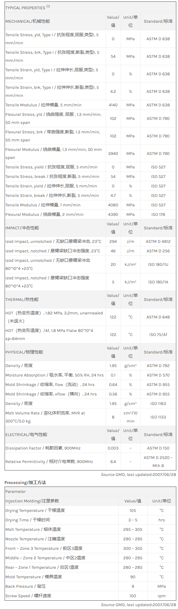 应用范围: 产品描述 LNP Thermocomp ZX06323物性表 LNP THERMOCOMP ZX06323是一种聚苯醚+PS(PPE+PS)材料,含有的填充物为矿物填料,加工方式为:注射成型。 This material is mineral filled PPO grade with high dielectric constant and low loss tangent Prop