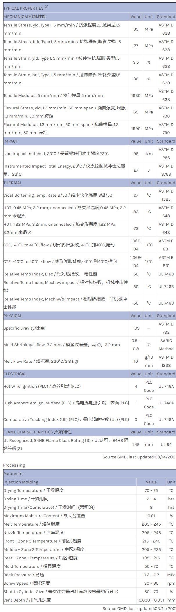 CYCOLAC ABS FXT610GL物性表