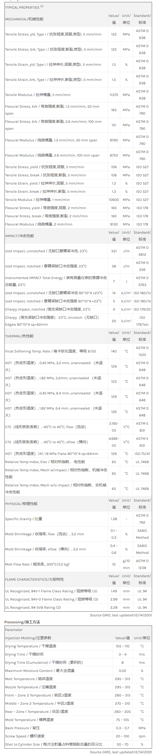 惠州LNP Thermocomp Noryl_PCN2910物性表