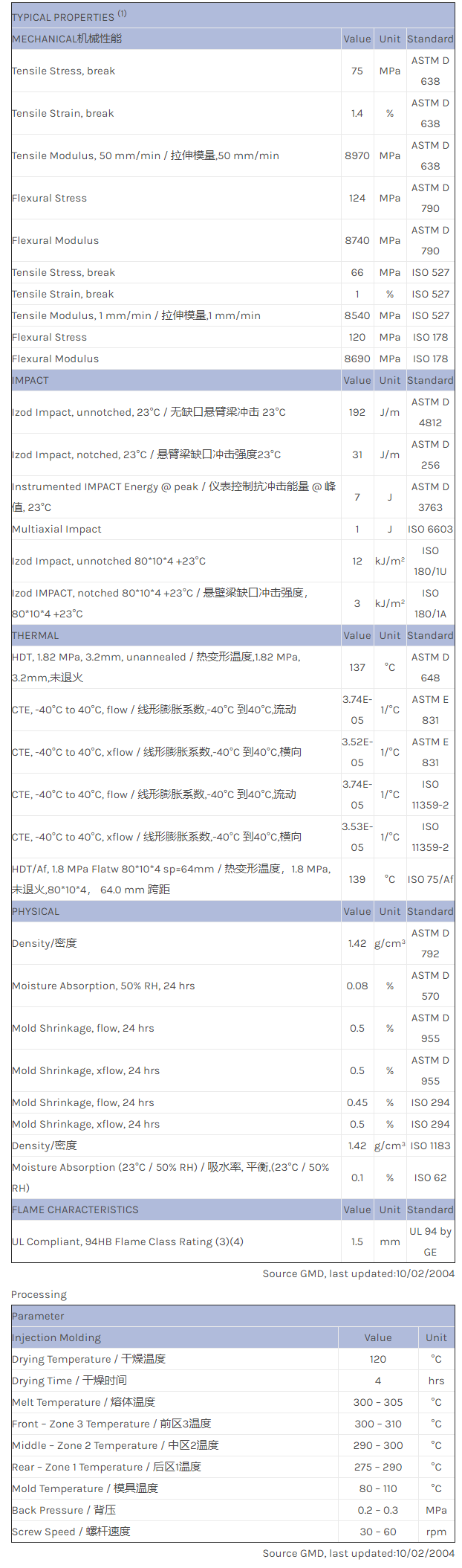 应用范围: 产品描述 LNP THERMOCOMP ZFM62P物性表 LNP THERMOCOMP ZFM62P是一种聚苯醚+PS(PPE+PS)产品,含有的填充物为10%玻璃纤维增强材料和30%云母填料,可以通过注射成型进行加工。 特性包括: 阻燃/额定火焰 加工性能良好