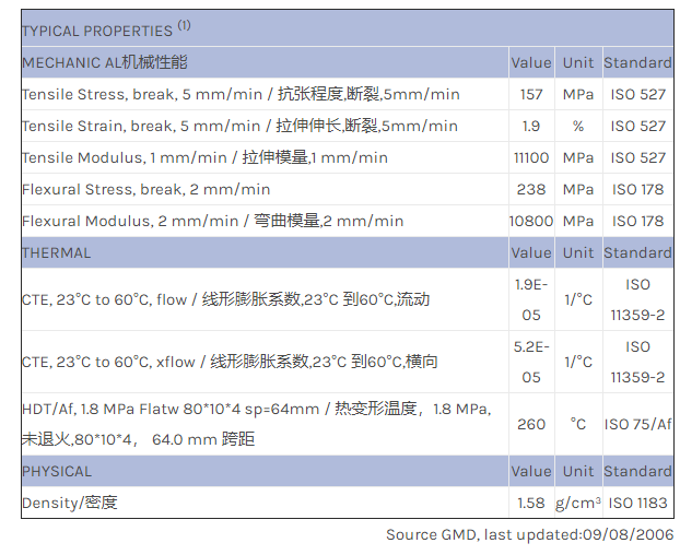 应用范围: 产品描述 LNP THERMOCOMP OF006A物性表 LNP THERMOCOMP OF006A是一种支化聚苯硫醚产品,含有的填充物为30%玻璃纤维增强材料,可以通过注射成型进行加工货。 特性包括: 阻燃/额定火焰 支化聚合物结构
