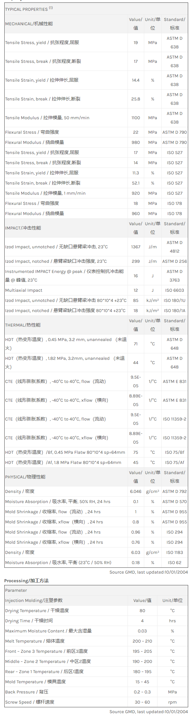 应用范围: 产品描述 LNP Thermocomp TH0600A物性表 LNP THERMOCOMP TH0600A是一种聚氨酯材料,加工方式为:注射成型 LNP THERMOCOMP* TH0600A is a compound based on Polyurethane resin. Added features of this material include: High Specific