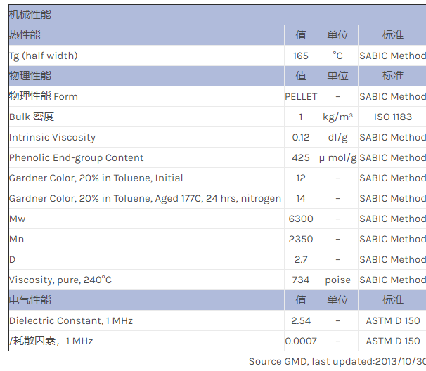 应用范围:产品描述NORYL PPO SA120物性表NORYL SA120 resin is a low molecular weight polymer based on Polyphenylene ether (PPE). NORYL SA120 is intended for use as additive or building block in a variety of thermoplasti
