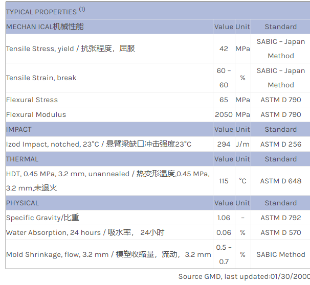 应用范围:产品描述NORYL PPO EBN9003物性表