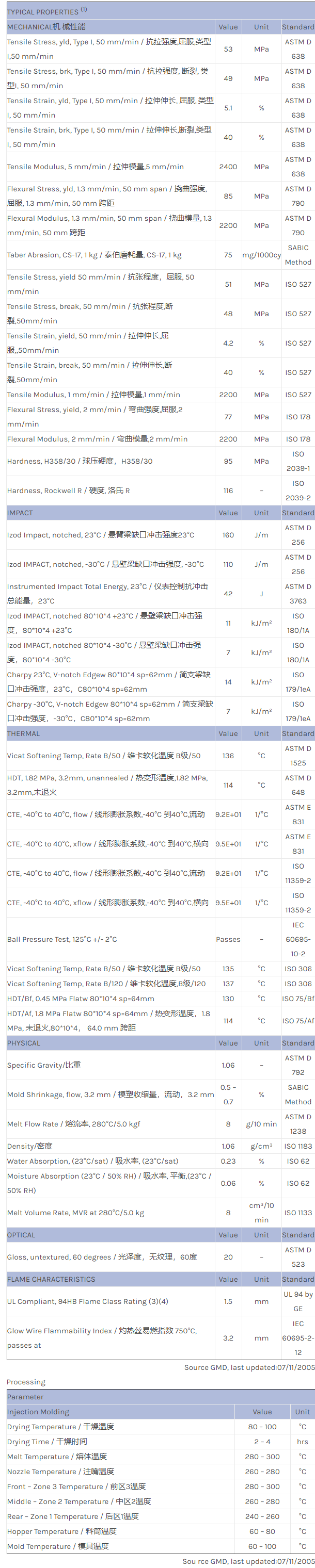 应用范围:产品描述NORYL PPO EXNL0134物性表Noryl EXNL0134 is a low gloss PPE/HIPS grade. It provides a balance of MECHANICAL机械性能 properties and heat performance with intrinsic low gloss appreance. EXNL0134 is available