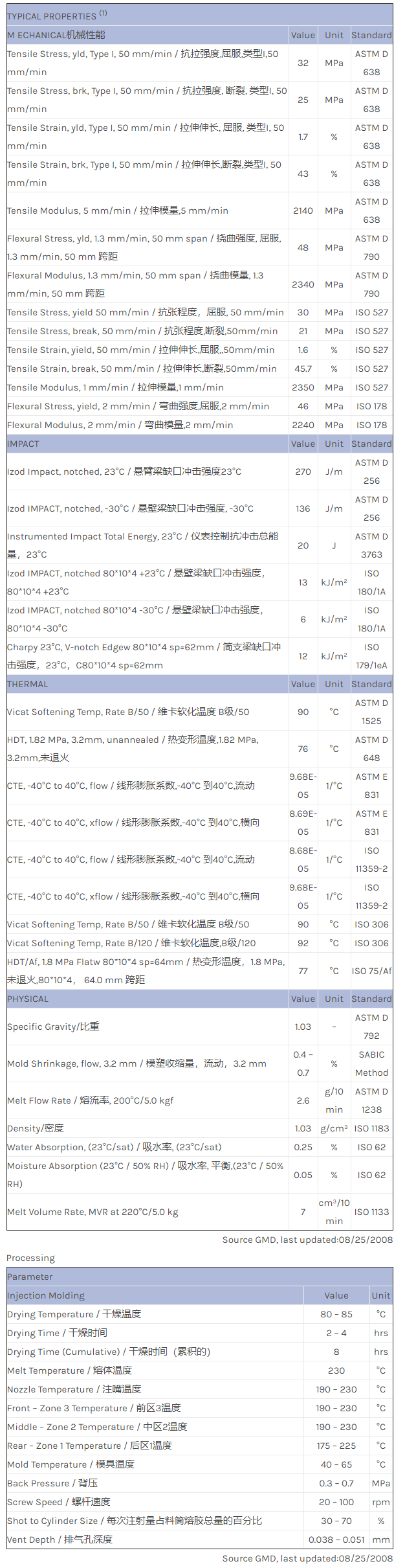应用范围:产品描述NORYL PPO HIPS3191物性表