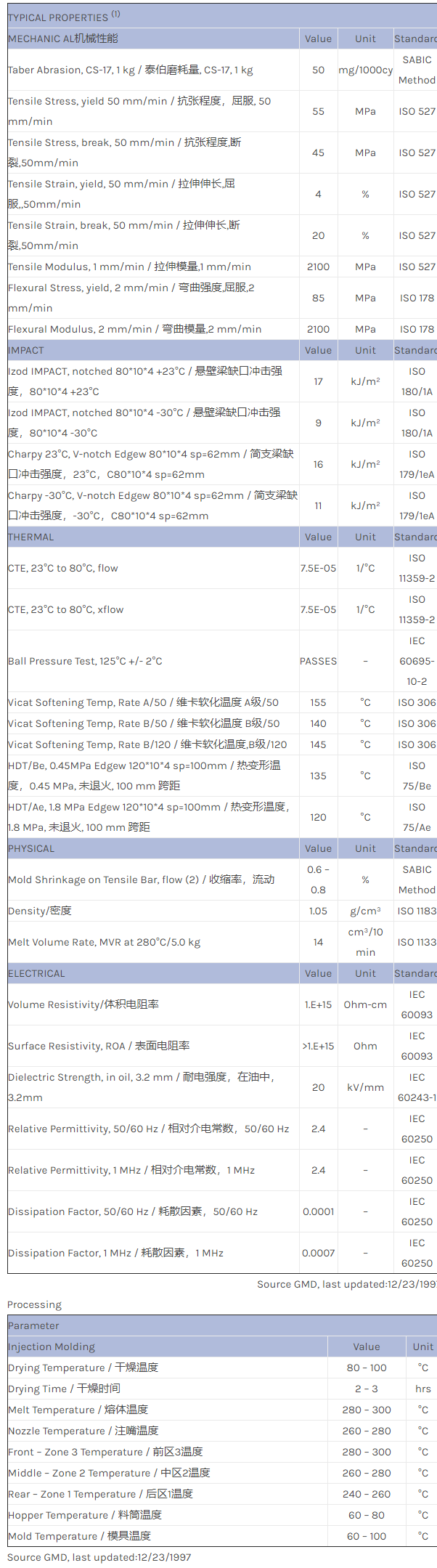 Noryl PO2319A is an unfilled, medium heat material with improved heat ageing performance.