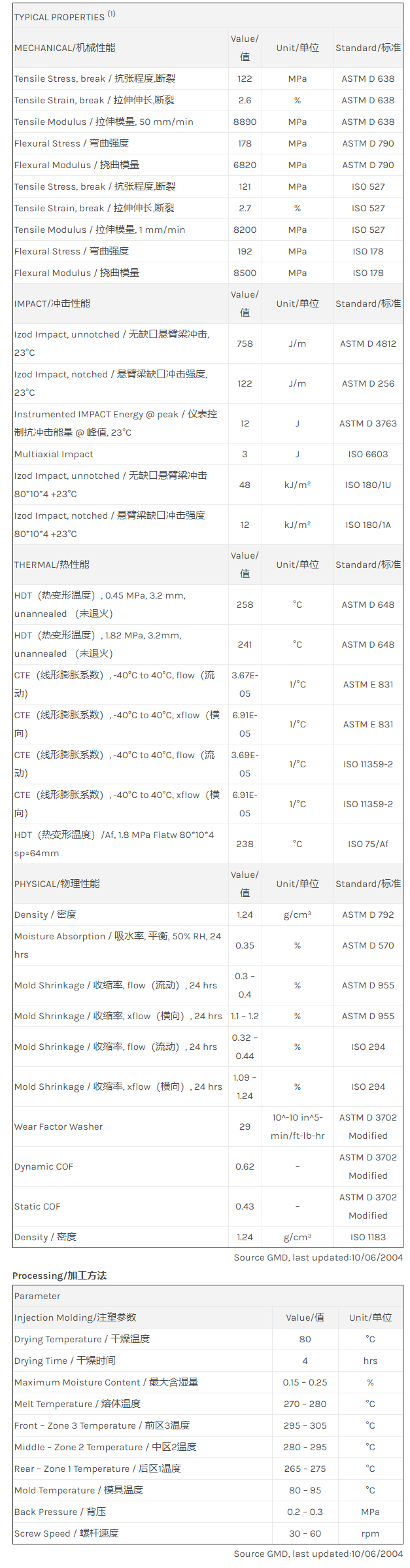 应用范围: 产品描述 LNP Lubriloy RF206物性表 “LNP LUBRILOY RF206 compound是一种聚酰胺66(尼龙66)产品,含有的填充物为30%玻璃纤维增强材料,可以通过注射成型进行加工。 特性包括: 耐磨 润滑” 相关颜色色号:RF206-BK8115、RF206-GYMDNAT LNP LUBRILOY* RF206H is a compound base