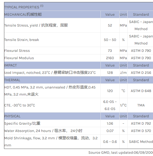 应用范围:产品描述NORYL PPO PX2622物性表NORYL PX2622 resin是一种聚苯醚+PS(PPE+PS)材料,典型应用领域为:汽车行业