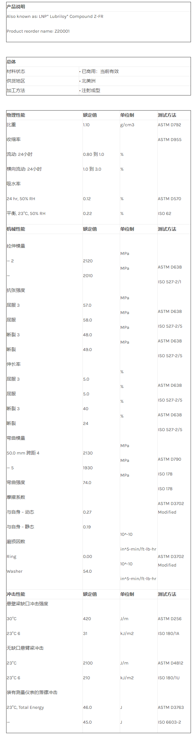 应用范围: 产品描述 LNP Lubriloy Z20001物性表