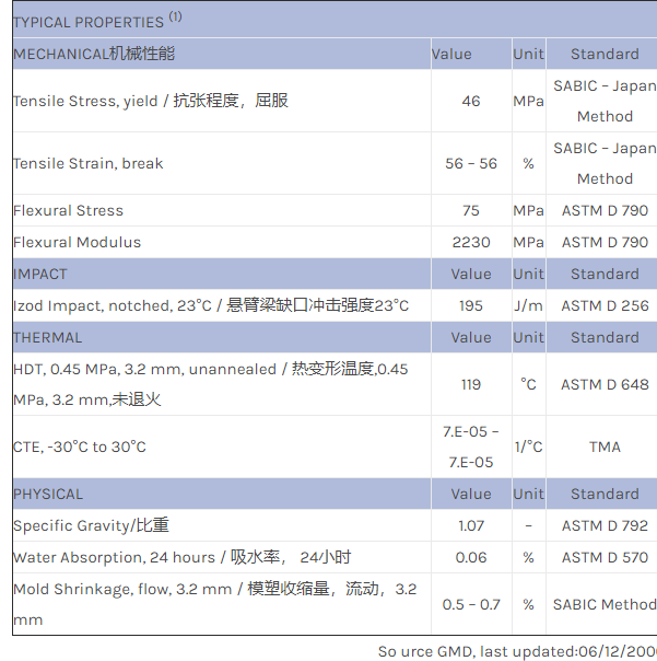 应用范围:产品描述NORYL PPO PX2623UR物性表