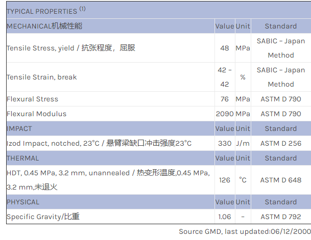 应用范围:产品描述NORYL PPO PX2630物性表NORYL PX2630 resin是一种聚苯醚+PS(PPE+PS)材料,主要特性为:耐冲击。