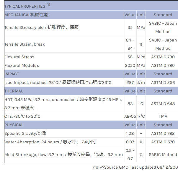 应用范围:产品描述NORYL PPO PX2727物性表