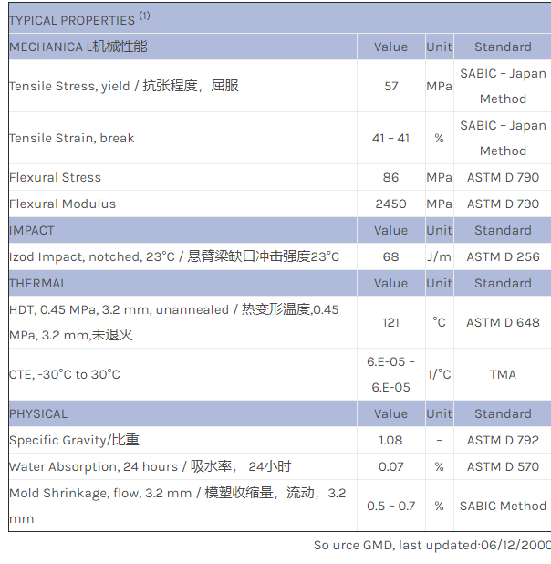 应用范围:产品描述NORYL PPO PX2730物性表