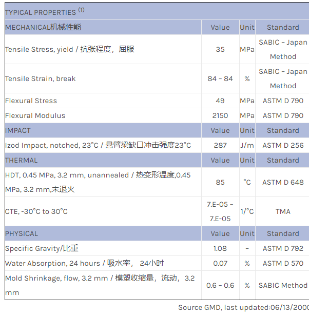 应用范围:产品描述NORYL PPO PX2803物性表