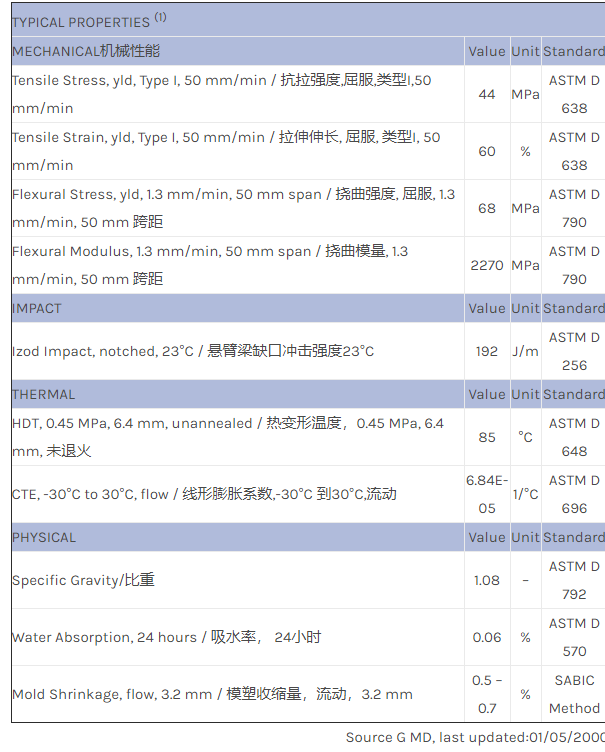 应用范围:产品描述NORYL PPO PX2810物性表Made and tested at GEP Japan.