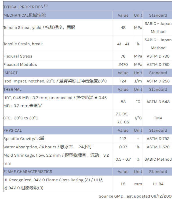 应用范围:产品描述NORYL PPO PX2890X物性表