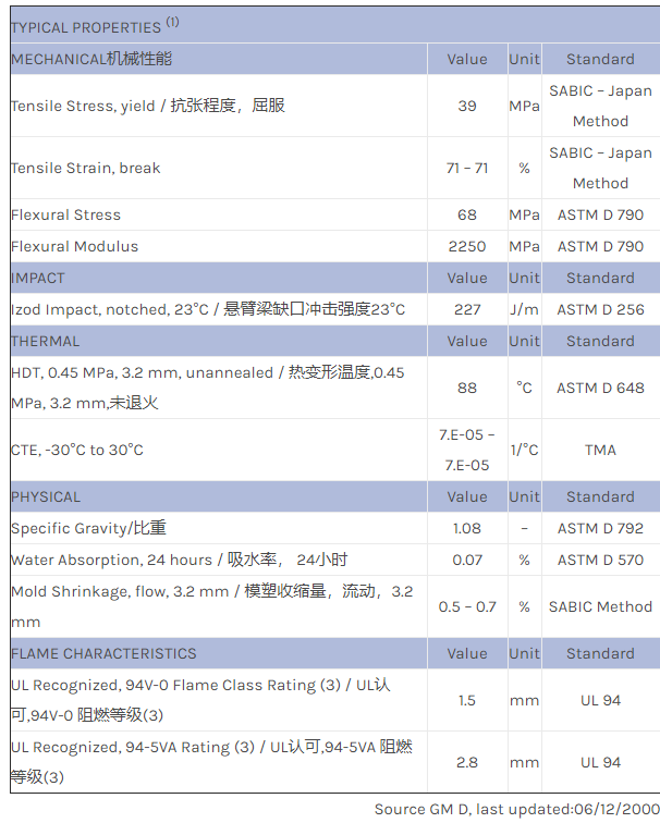 应用范围:产品描述NORYL PPO PX2891物性表
