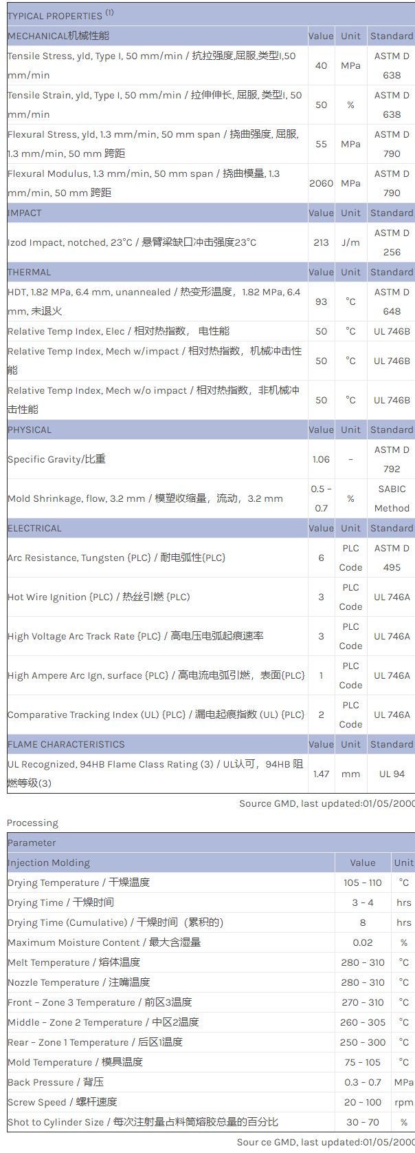 应用范围:产品描述NORYL PPO PX4609物性表Camera market. Unreinforced.
