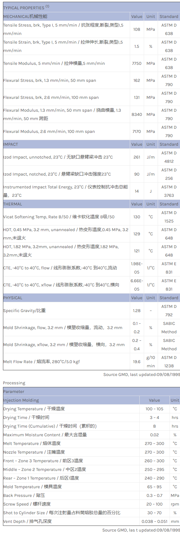 应用范围:产品描述NORYL PPO PX5558物性表高流动PPO。