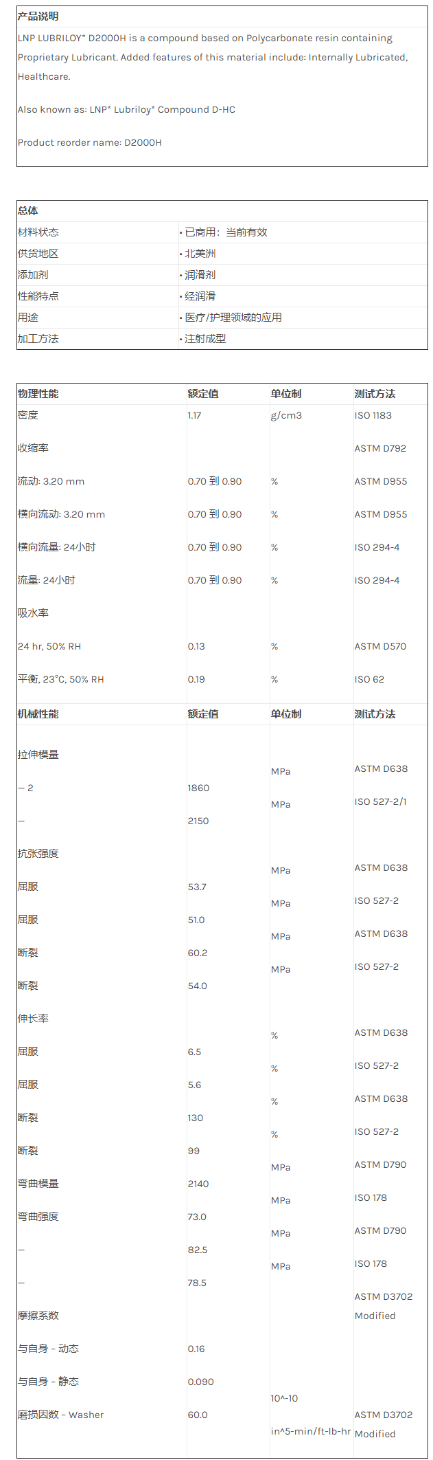 应用范围: 产品描述 LNP LUBRILOY D2000H物性表