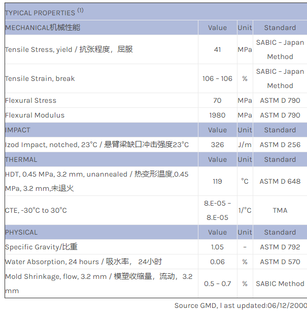 应用范围:产品描述NORYL PPO STN15HFN物性表