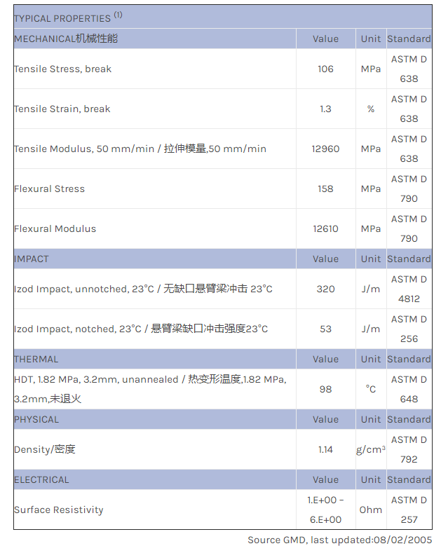 应用范围: 产品描述 LNP STATKON AE004物性表 LNP STAT-KON AE004是一种丙烯腈丁二烯苯乙烯(ABS)材料,含有的填充物为碳纤维增强材料。 LNP STAT-KON AE004的主要特性为:传导性。