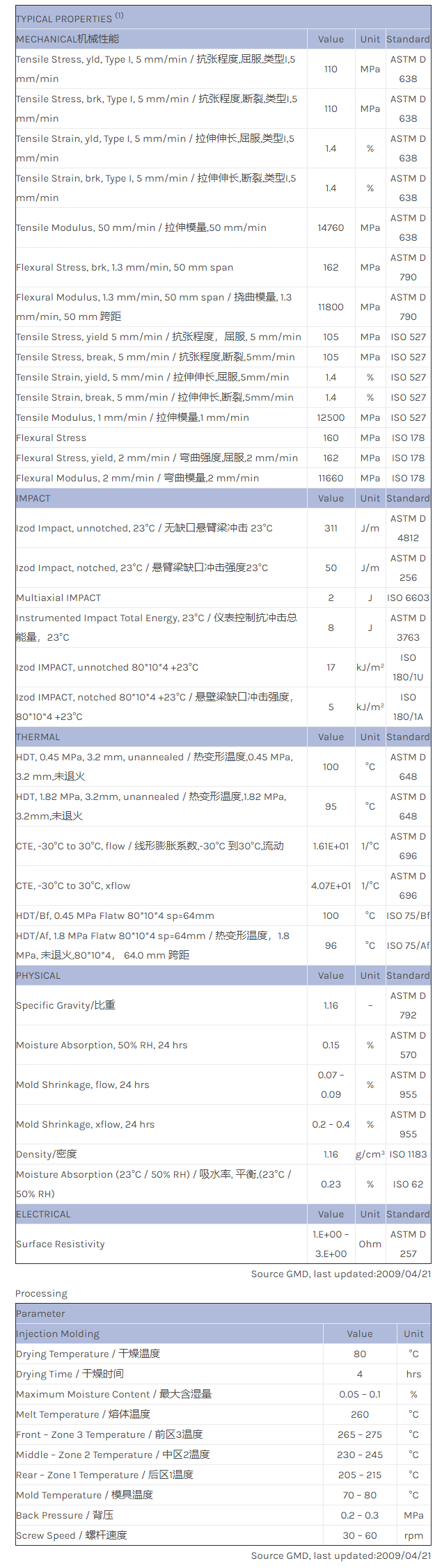应用范围: 产品描述 LNP STATKON AE004E物性表 LNP* Stat-Kon* AE004E is an ABS compound containing Glass Fiber. Characteristics of this grade are Statically Conductive and Easy Molding.