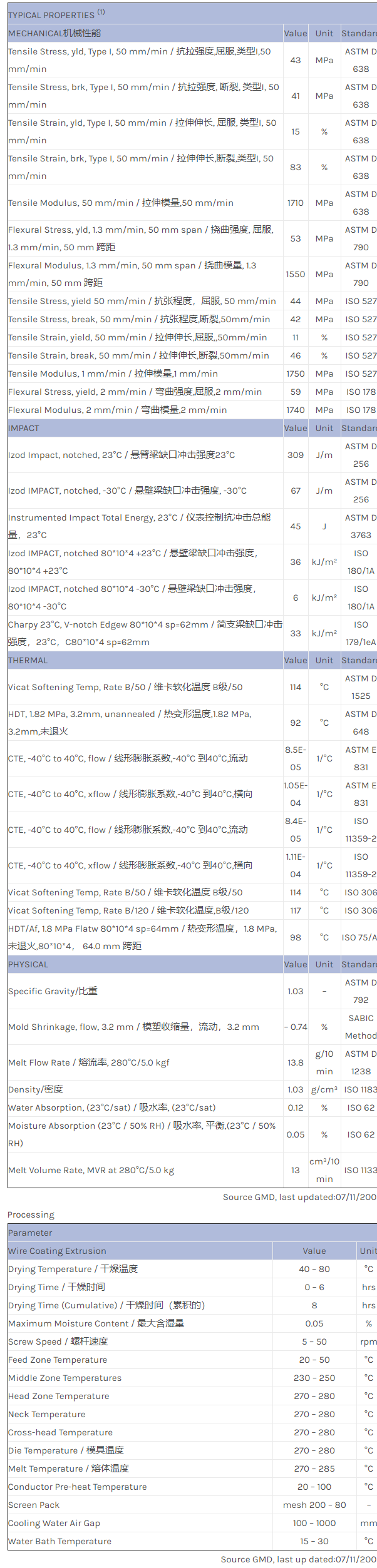 NORYL WCV072 resin是一种聚苯醚+PS+PP(PPE+PS+PP)产品,应用领域包括电线电缆和汽车行业。