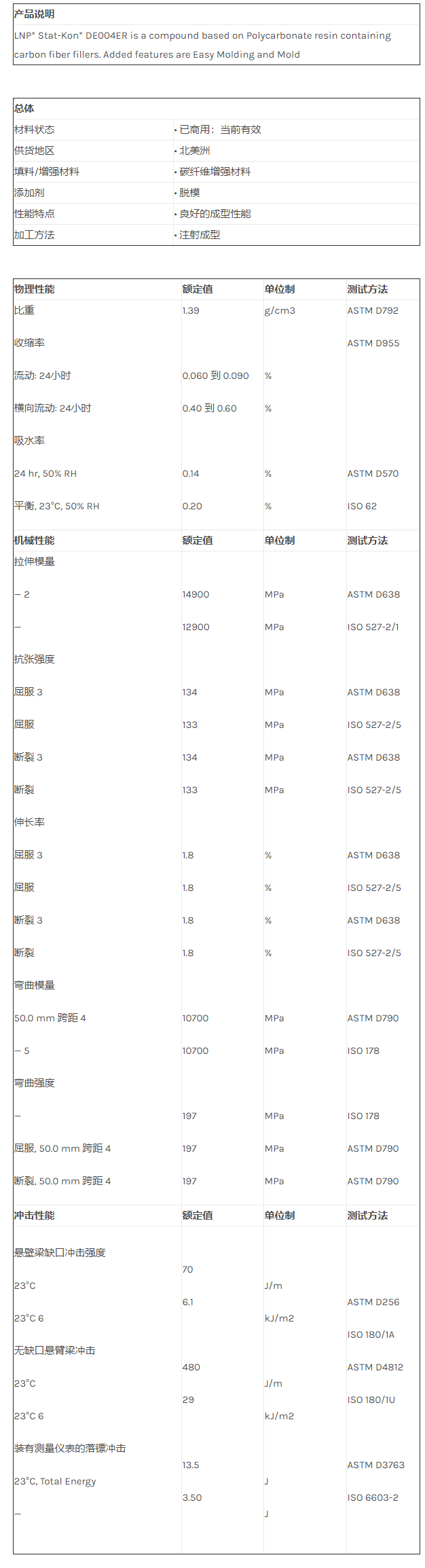 应用范围: 产品描述 LNP STATKON DE004ER物性表