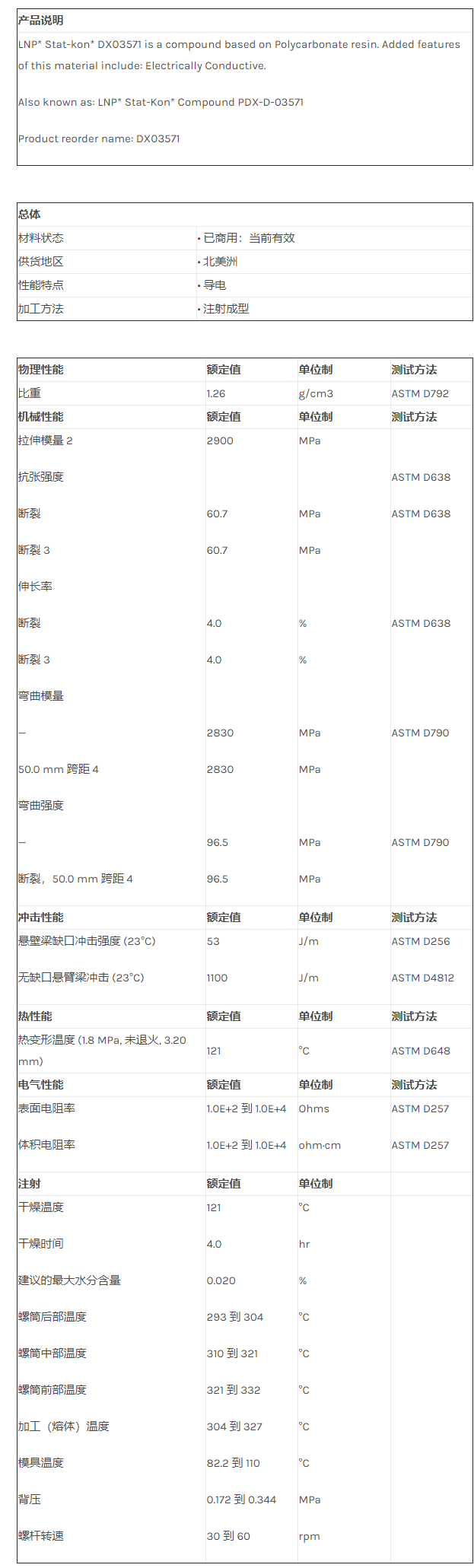 应用范围: 产品描述 LNP STATKON DX03571物性表