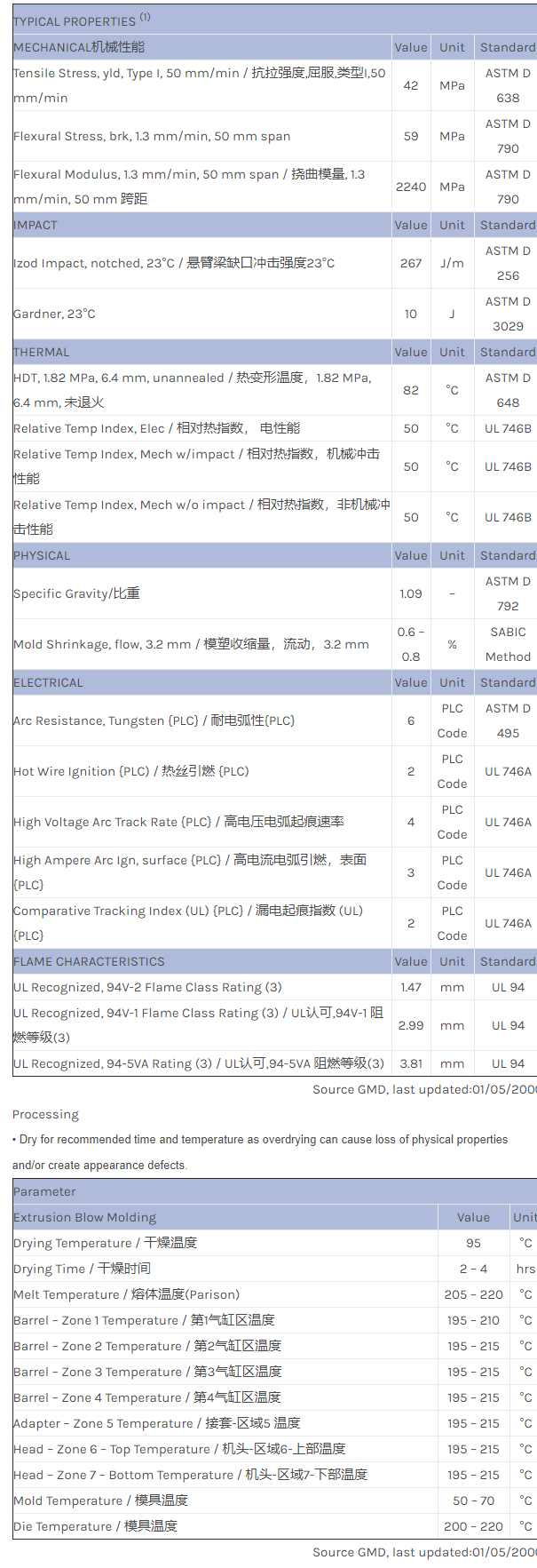 应用范围:产品描述NORYL PPO BN30物性表可吹塑。DTUL(载荷下挠曲温度):180F。 UL额定值。