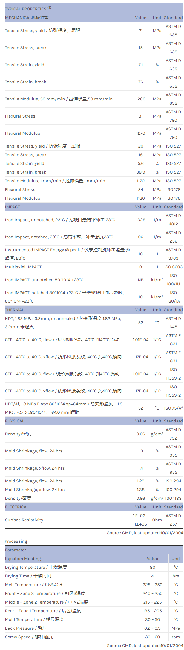 应用范围: 产品描述 LNP STATKON MS000ILX物性表 LNP STAT-KON* MS000ILX is a compound based on Polypropylene resin containing Stainless Steel. Added features of this material include: Electrically Conductive.