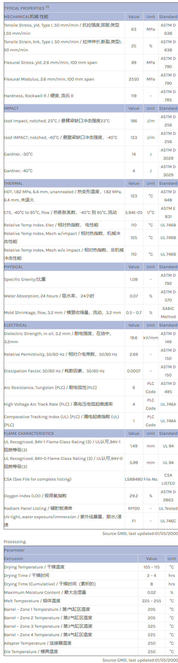 应用范围:产品描述NORYL PPO EN265物性表挤塑级。DTUL(载荷下挠曲温度):254F (123C) UL94 V-1 额定值。相关色号:EN265-701