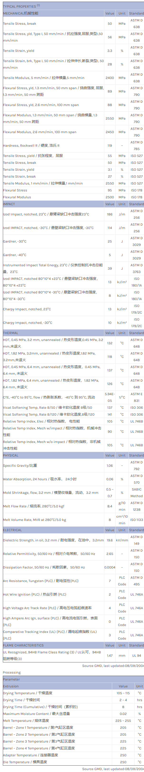 应用范围:产品描述NORYL PPO ENG265物性表挤塑级。DTUL(载荷下挠曲温度):254F (123C) UL94 V-1 额定值。相关色号:ENG265-8746S