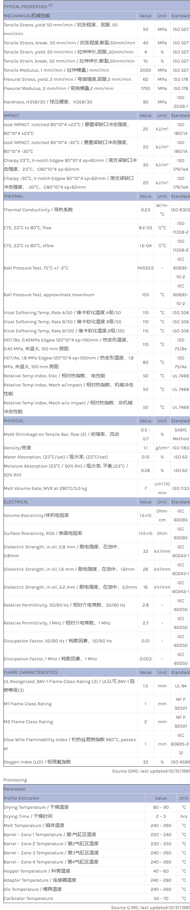 NORYL ENV105 resin是一种聚苯醚+PS(PPE+PS)材料,加工方式为:型材挤出成型。